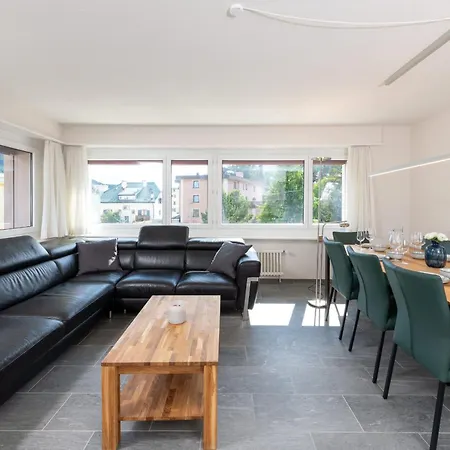 Beautiful Modern Family Apartment With Free Parking St. Moritz med 2 sovrum ligger cirka 5 minuters gångavstånd från San Karl Sankt Moritz-Bad kyrka och har utsikt över trädgården. När du bor i den 110 m² stora lägenheten kan du koppla av på en uteplats, i närheten av San Carl.